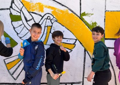 El primer encuentro tuvo lugar con el inicio de la pintura de un mural en el Parque de los Pajaritos, donde los alumnos y alumnas comenzaron a dar color y forma a esta obra conjunta.