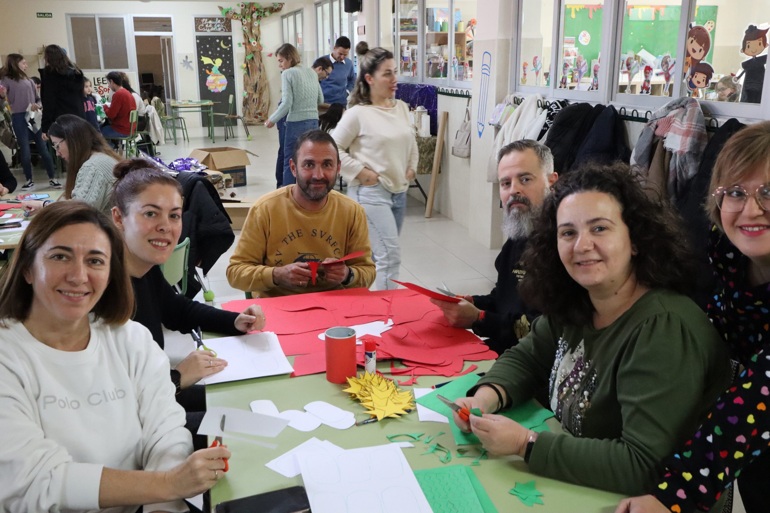 Desde primera hora de la mañana, madres, padres, abuelos, hermanos y los propios alumnos se pusieron manos a la obra: recortaron, pegaron, colgaron y diseñaron todo tipo de elementos decorativos que ahora llenan los espacios del colegio de color y ambiente navideño.