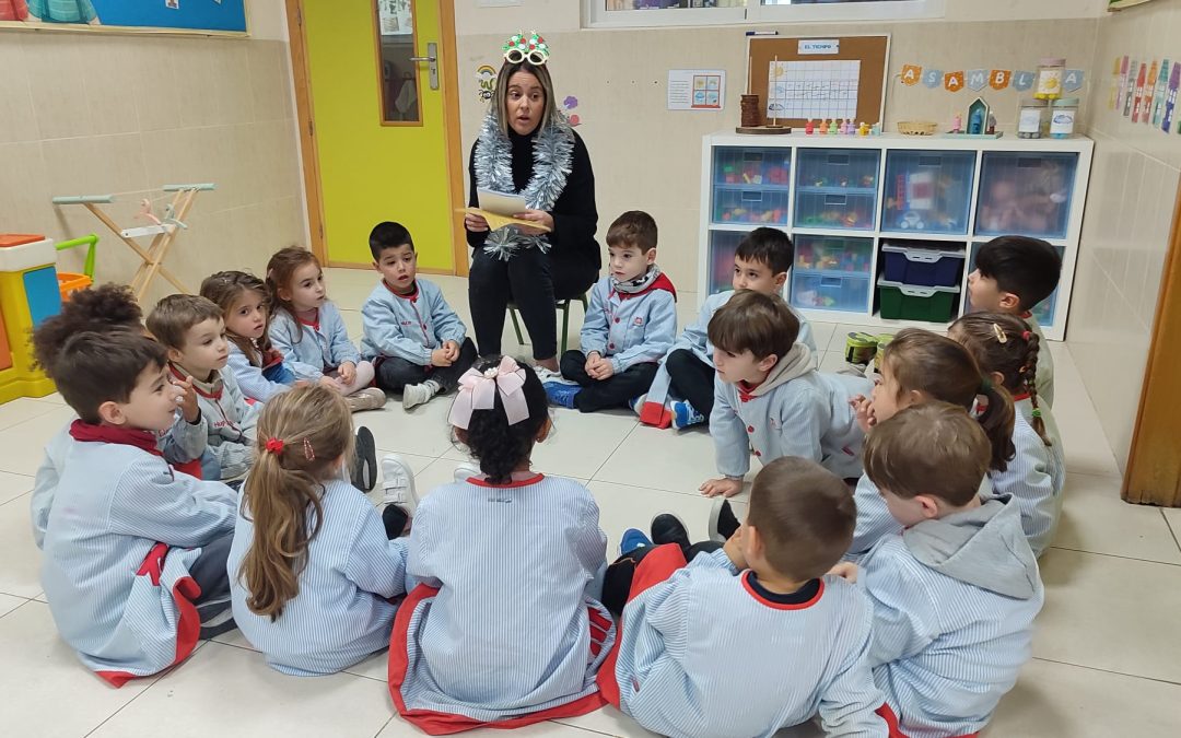 En infantil, una mamá de cada clase apareció por sorpresa en las aulas, vestida con atuendos muy navideños. Nos contaron una preciosa historia sobre cómo la estrella de Navidad volvió a iluminarse, llenando de emoción y fantasía a todos los niños y niñas. Después, nos pidieron que cogiéramos la estrella que habíamos decorado días atrás y la carta que acabábamos de escribir para salir juntos al patio.