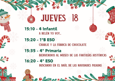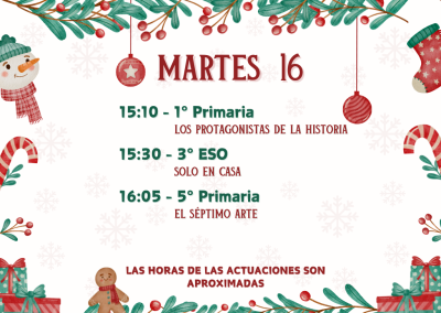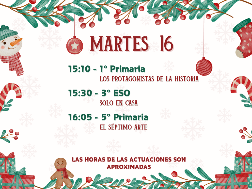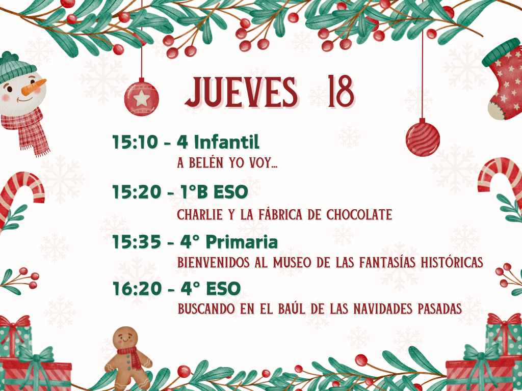 Dicen que, cuando diciembre se acerca, algo especial empieza a suceder en el colegio. Los pasillos parecen despertar, las aulas cobran vida propia y cada rincón comienza a susurrar melodías y versos. Y es que un año más nos preparamos para vivir uno de los eventos más esperados por nuestro alumnado, profesorado y familias: el Festival de Teatro y Villancicos, que celebraremos del 15 al 19 de diciembre.